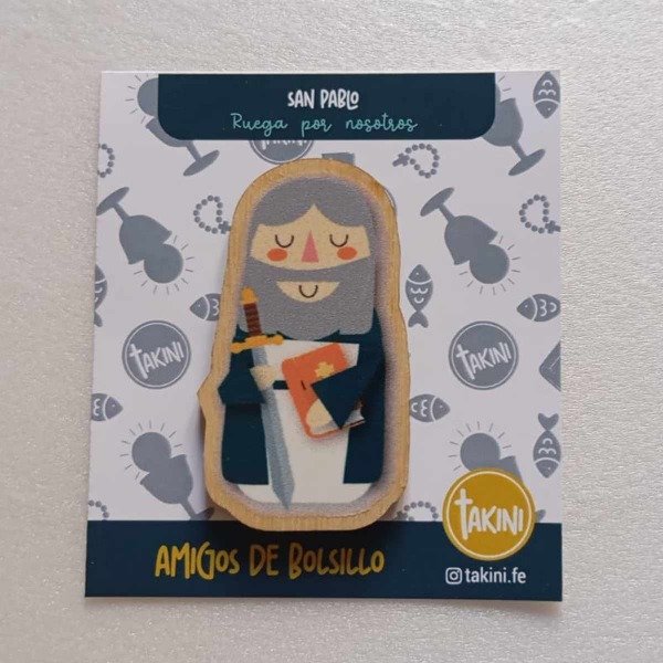 Pequeñas piezas de madera e impresa con la figura de Jesús, María o santos, pensadas para que los niños puedan llevarlas consigo en el bolsillo, la mochila o el estuche.