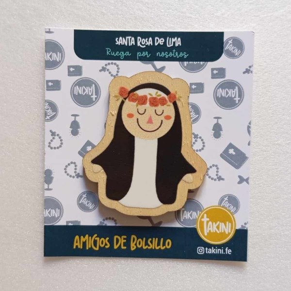 Pequeñas piezas de madera e impresa con la figura de Jesús, María o santos, pensadas para que los niños puedan llevarlas consigo en el bolsillo, la mochila o el estuche.