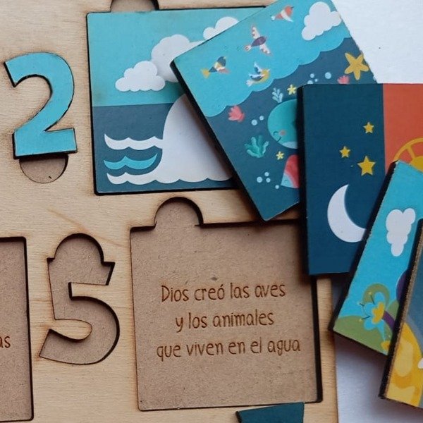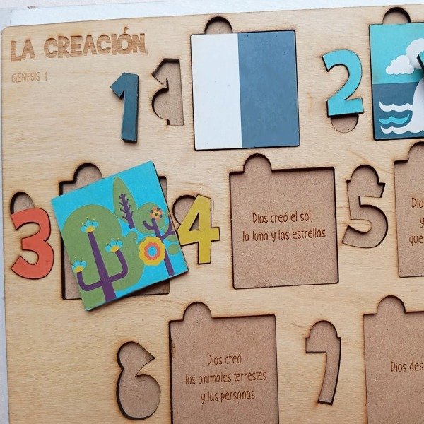 Desde el primer día hasta el séptimo, Dios creó el mundo con amor y propósito. Con este juego de madera de gutambú encastrable, los niños pueden descubrir la historia de la Creación mientras desarrollan habilidades cognitivas y motoras.